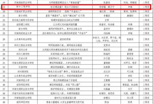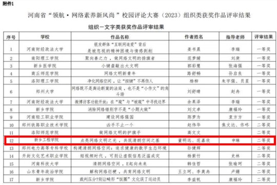 近日,由河南省教育厅组织开展的“领航·网络素养新风尚”校园评论大赛拟获奖作品及名单公示。由申琳老师指导的我院学生李琼璠、韩子宁的作品《扮丑博流量?观众不买账啦!》与董明远、范嘉欣的作品《点亮网络文明之光,共筑清朗空间之基》喜获省二等奖。由申琳、李明玉老师指导的我院张雯、任涵、李映乐、闫禾、韩佳彤等同学的作品《从谷女士到杨女士:网络暴力的警与清朗网络的持久战》喜获省三等奖。