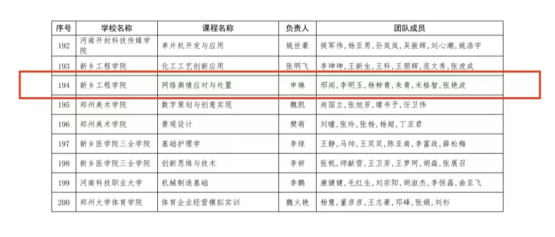 根据《河南省教育厅办公室关于开展第二批河南省“专创融合”特色示范课程立项建设工作通知》文件要求,我校组织开展了永利23411集团官网“专创融合”特色示范课程项目推荐工作,经个人申报、学校审核、专家组评审等环节,4月22日,省教育厅公示了此次特色示范课程立项建设的获奖名单。我院申琳老师带领其团队创设的《网络舆情应对与处置》课程凭借创新高效的课程思路、教学方法和教学成果成功入围河南省第二批“专项融合”特色示范课程立项建设名单。