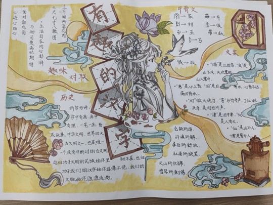 活动作品要求切合“汉字主题趣味作品”主题,内容积极向上,健康且富有趣味性,规定活动形式为手抄报和漫画两类。同学们以汉字为主题积极进行创作,以独特的视角和创意,将汉字的魅力展现的淋漓尽致。同学们的手抄报作品图文并茂,通过细腻的笔触和精妙的排版、构图,讲述汉字的故事,展示出汉字的独特韵味。漫画作品则以幽默诙谐的方式,将汉字融入故事情节中,让大家更加直观地感受到汉字文化的博大精深。最后,该活动依据评比规则,并在我院的精心组织和评选下,共评选出两个一等奖,三个二等奖,五个三等奖和十个优秀奖。