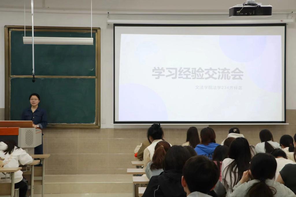 为进一步激发同学们的学习热情,帮助学生明确自己的学习目标与方向,加强学风建设,培育优良学风,营造良好学习氛围,我院于4月11日在北校区树人楼101教室召开学习经验交流会。本次会议由23级文法学院学生代表上台分享学习经验,23级全体同学参加。
