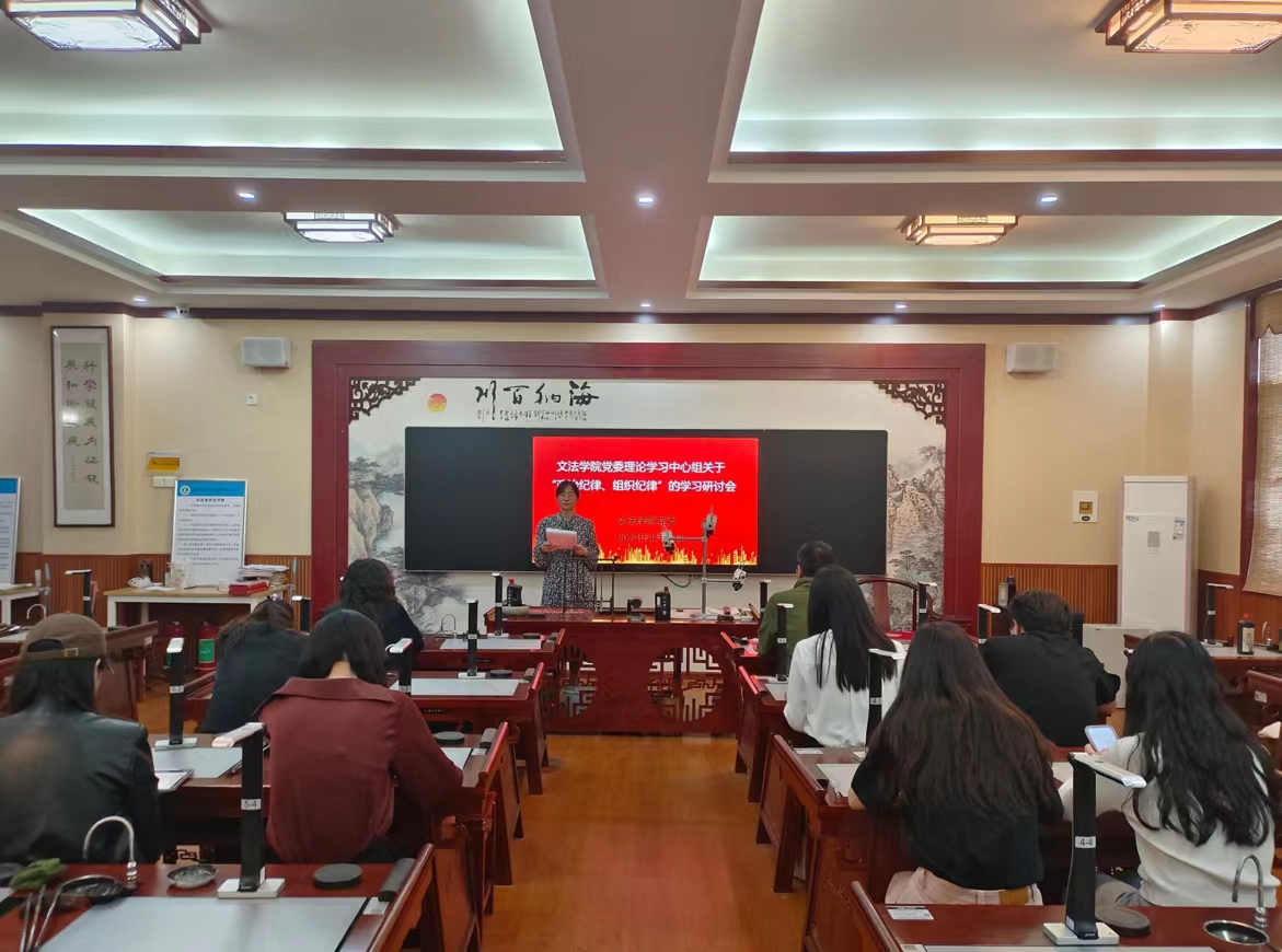 为进一步强化纪律意识,增强政治定力,提高教职工的政治思想要求,4月25日下午,我院党委中心组开展党纪学习研讨会,为全体党员讲授了一节党纪学习教育专题党课。本次会议由我院党委副书记刘松梅主持,文法学院全体教师党员参加。