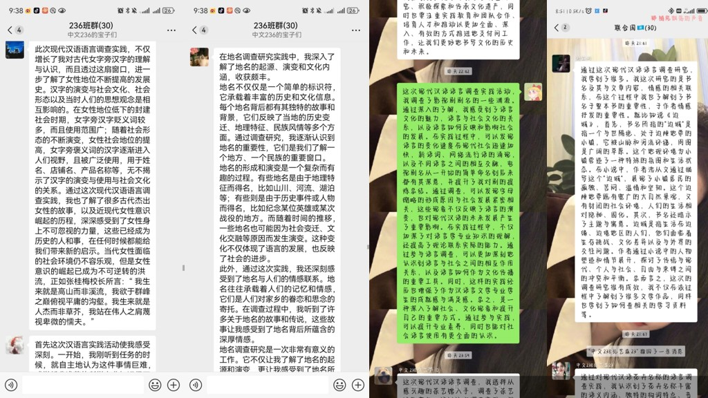 以下摘取自23级汉语言文学(师范)、汉语国际教育(师范)专业对此次实践调查活动的收获与感悟: