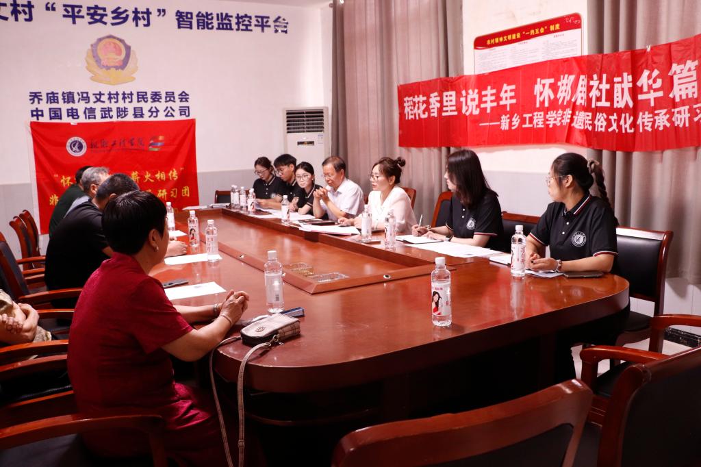 为深入学习贯彻习近平新时代中国特色社会主义思想和党的二十大精神,学习宣传贯彻习近平文化思想,2024年7月11日上午,永利23411集团官网文法学院组织“怀梆艺韵,薪火相传”非遗民俗文化传承研习团,赶赴焦作市武陟县乔庙镇冯丈村,学习怀梆戏曲,传承弘扬非遗民俗文化。