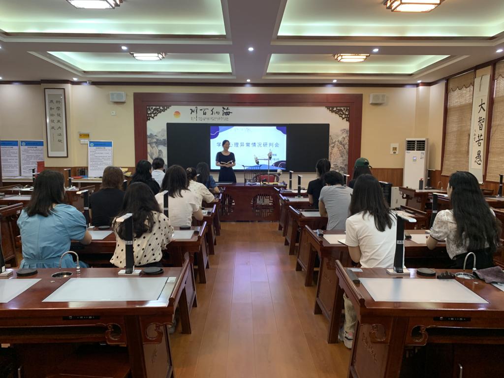 为了进一步关注学院内学生的心理健康状况,通过深入研判和讨论,为存在心理异常的学生提供及时有效的帮助与支持,提升学院心理危机预防和干预能力,我院于7月3日在学院楼书法教室召开学生心理异常情况研判会,本次会议由文法学院党委副书记刘松梅主持,全体辅导员参会。