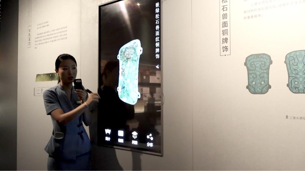 随着讲解员郭婧一生动的讲述,实践团队拨开历史的迷雾,一个距今五千多年前的历史画卷在实践团的眼前缓缓展开。最引人注目的便是被誉为“中国第一龙”的绿松石龙形器,2000余片绿松石被用高超的技法镶嵌成了一条绵延数十厘米的精致龙形,游览者之间赞叹声不绝于口,跨越千年依然给予人深刻的震撼。作为镇馆之宝之一的玉璋造型精美、气势恢宏,不仅是二里头文化重要的礼器类型之一,更作为夏朝广域王权的政权象征传播至数千公里外的东南亚,深刻地影响和辐射着数千年前的东亚区域。
