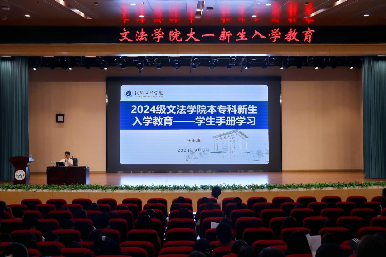 为帮助新生全面了解学校的规章制度,尽快适应大学生活,我院于2024年9月8日在报告厅开展新生学生手册学习会议。此次会议由辅导员张乐康老师主持,文法学院全体新生参加。