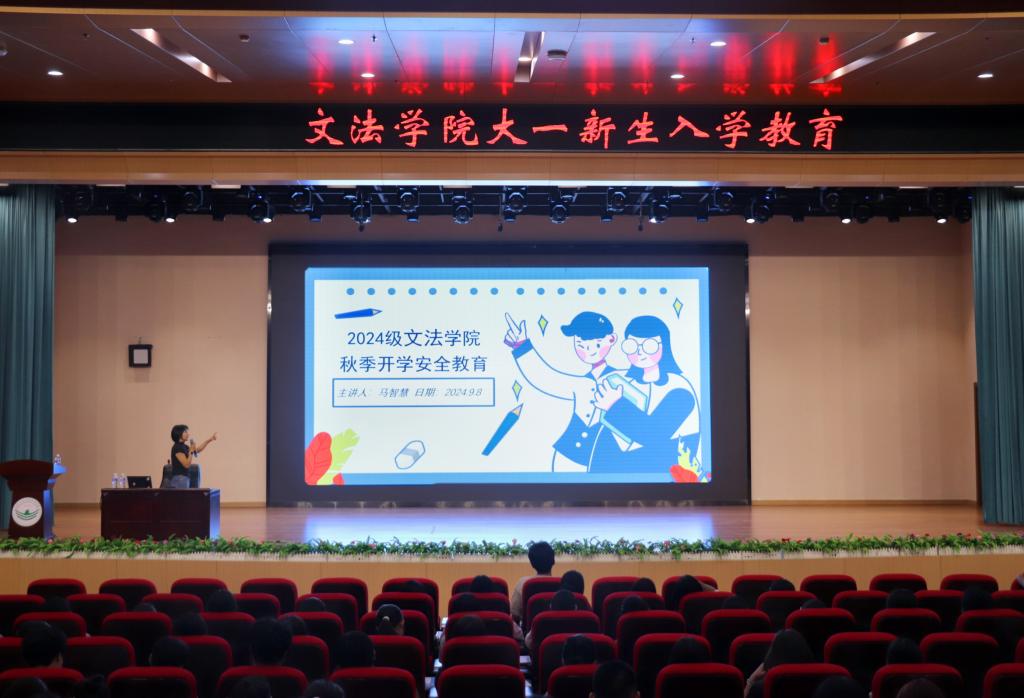为进一步增强学生的安全意识,提高学生的自我保护能力,我院于2024年9月9日在报告厅召开新生安全教育会议。本次会议由24级国教及传播辅导员马智慧老师主持,文法学院全体新生参加。