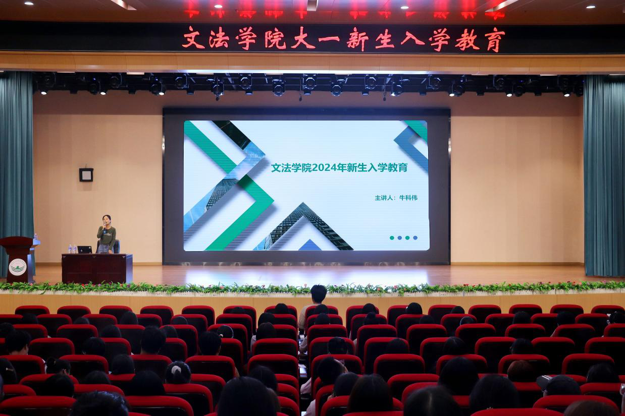 为帮助新生清晰认识责任和使命,明确大学学习目标和方向,快速适应大学生活,我院于2024年9月8日在报告厅召开了新生入学教育会议。本次会议由24级中文辅导员牛科伟老师主持,文法学院全体新生共同参与。