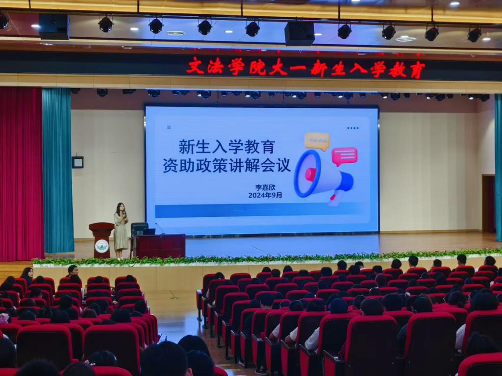 为深入贯彻国家和学校各项资助政策,切实做好我院2024级新生资助宣传工作,强化资助育人成效,我院于9月14日在北校区报告厅举办了2024级新生入学教育资助政策宣讲会。此次宣讲会由李嘉欣老师主持,全体2024级新生参会。