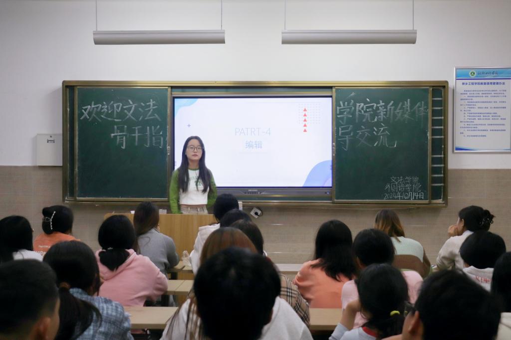 为了促进学院间的交流与合作,共同提升新媒体运营水平,我院于10月10日晚在南校区教学楼1-302、10月14日晚在北校区树人楼202,与机电学院和外国语学院联合开展新媒体交流分享会。此次活动由我院新媒体中心主席张之雅、副主席梁盼盼、技术部部长郭芳妤主持,机电学院和外国语学院新媒体中心成员参加。