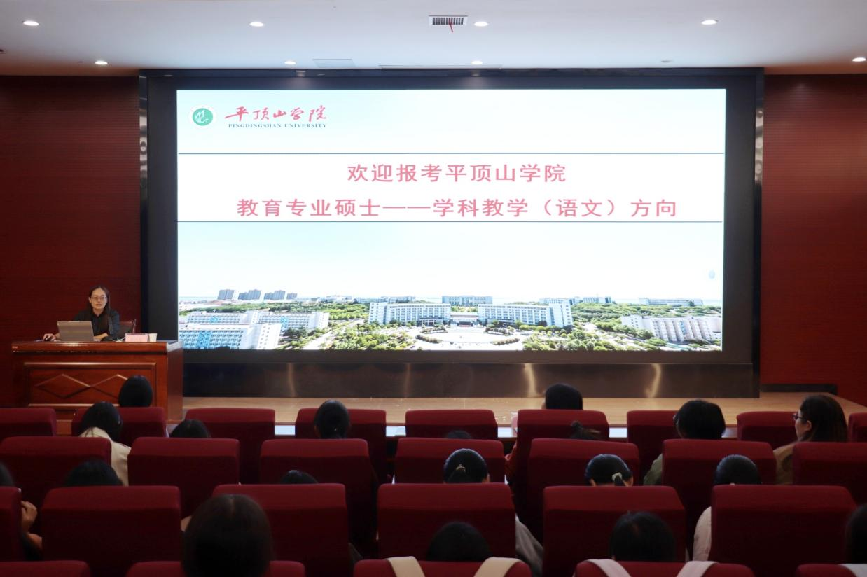 为助力学生明确考研方向,了解高校最新招生政策,充分掌握考研信息,10月14日下午,平顶山学院文学院党政办公室副主任周萧良、教学科研办公室教学秘书朱玉雯、教师彭月星一行到我院开展2025年平顶山学院研究生招生宣讲会,宣讲会在学院楼报告厅举办。本次宣讲会由我院团委副书记石子依主持,平顶山学院彭月星老师主讲,我院21级中文专业和Z23级中文专业全体学生参加。