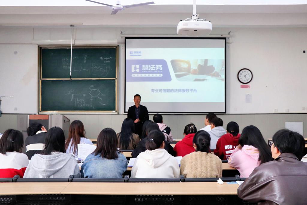 为贯彻落实党和国家的高校毕业生就业支持政策,帮助我院学生了解更多就业信息,做好职业定位并增强就业竞争力,新乡慧法务法律服务公司于10月25日在教学楼1-214召开专场招聘宣讲会,我院21级法学专业同学参加。