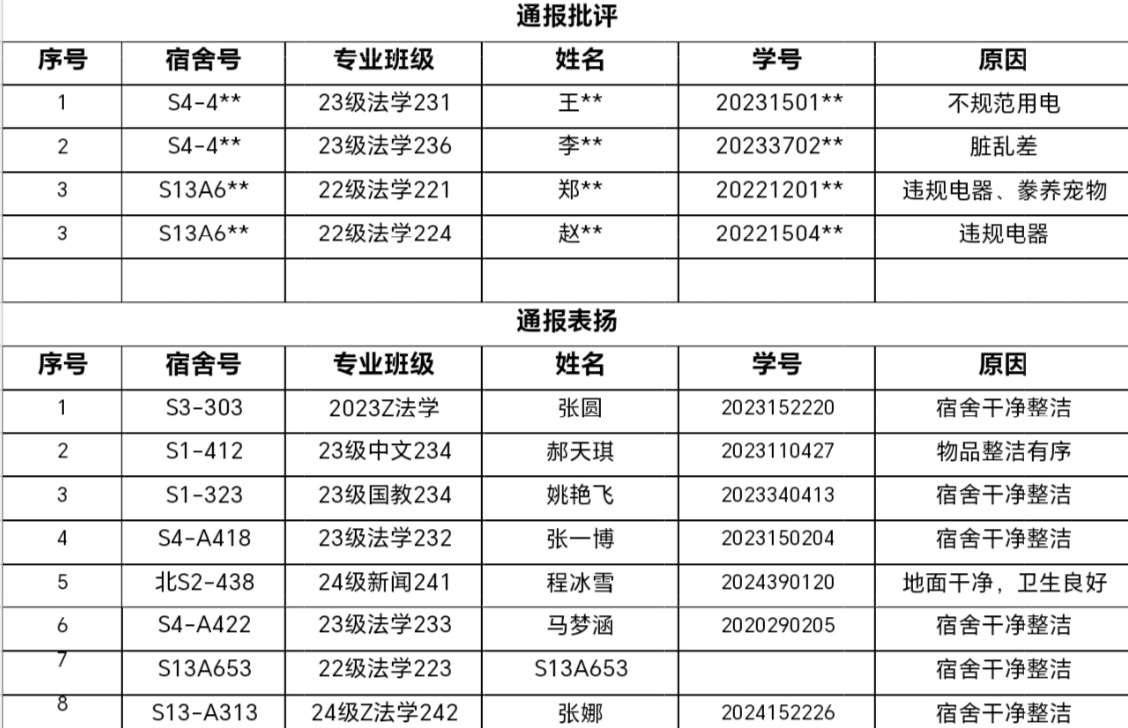 为加强宿舍管理,保障学生生活环境有序,我院于第11周全面开展辅导员查寝活动。本次文法学院第11周辅导员查寝结果已出,整体情况良好。下面对检查结果进行公示。