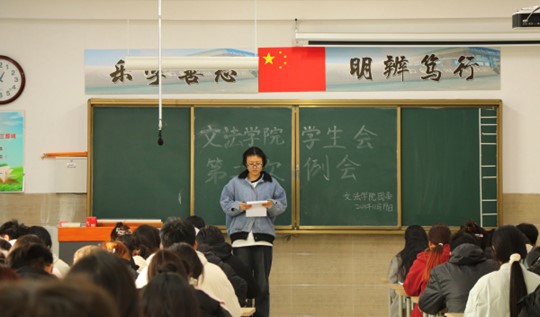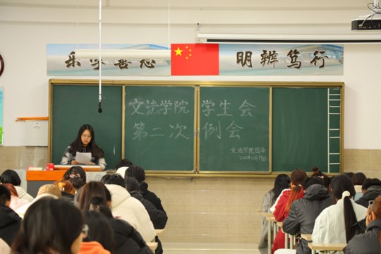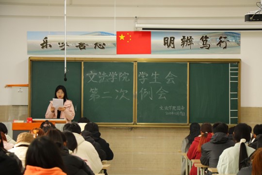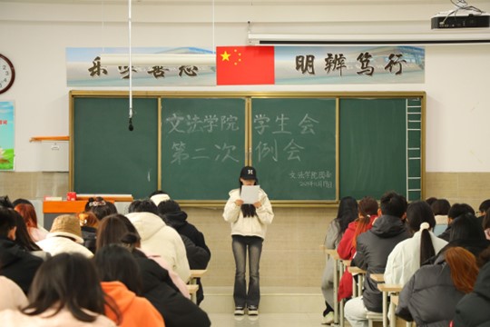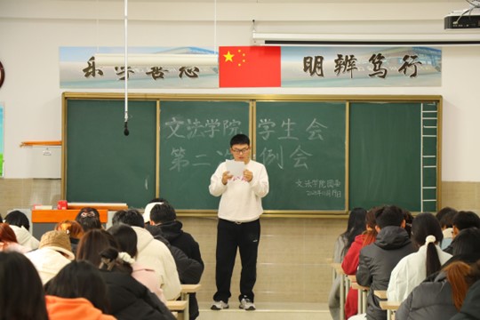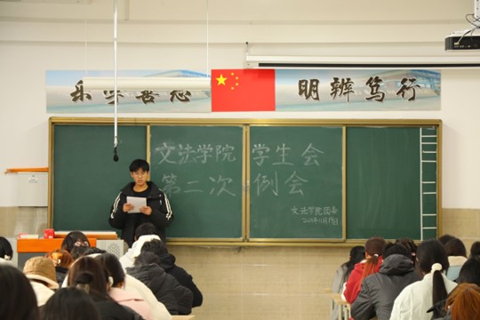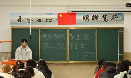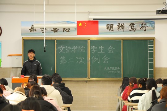 我院学生会于11月19日中午12点30在北校区启智楼229教室召开第二次例会。本次例会由我院学生会主席彭金龙主持,学生会主席团、各部部长及各部干事参加此次会议。