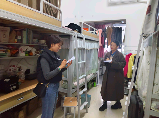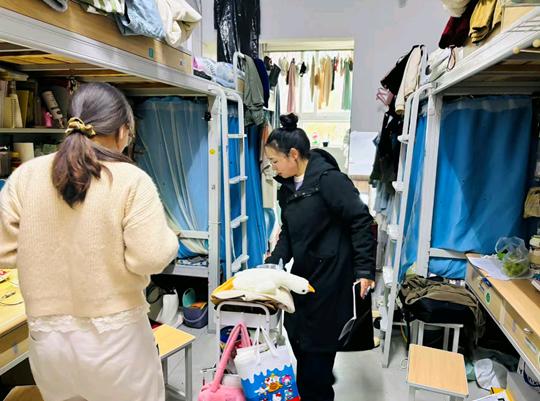 走访宿舍期间,我院辅导员深入各宿舍仔细排查安全设施,检查卫生情况,对发现的问题,及时提出了改进意见,并督促同学们及时整改。同时,辅导员还向学生普及安全用电知识,叮嘱同学们提高安全防范意识,关注用电安全、防火防盗的具体注意事项,增强安全观念,保障宿舍生活安全。此外,辅导员与同学们亲切交流,深入了解宿舍成员相处情况以及学生在学习、生活方面遇到的各类问题。针对同学们提出的不同疑问,辅导员依据实际情况耐心解答,共同探寻解决问题的有效途径。