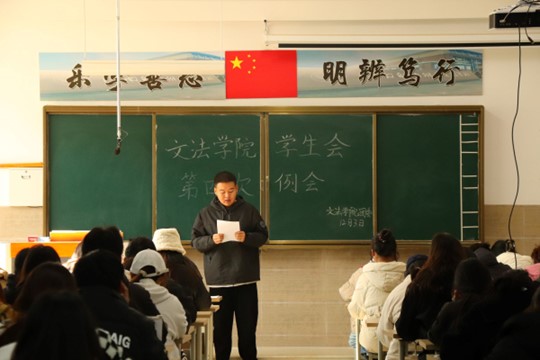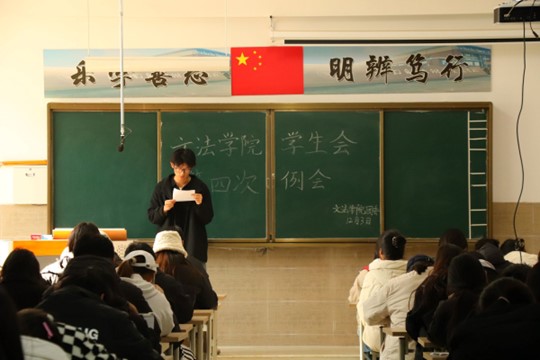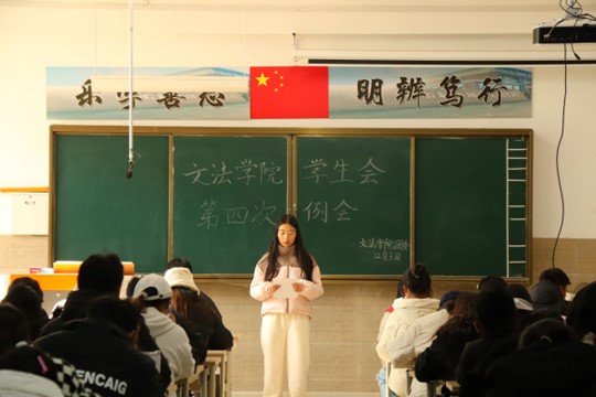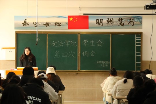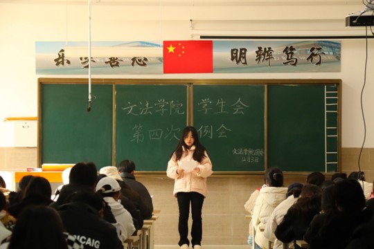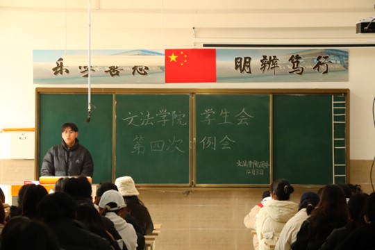 我院学生会于12月3日中午12:20—13:30在北校区启智楼229教室召开第四次会议。本次例会由我院学生会主席彭金龙主持,学生会主席团、各部部长及各部干事参加此次会议。