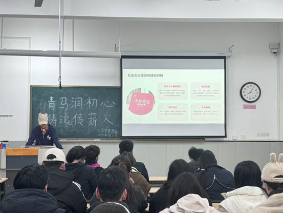 为深入领悟中国共产党百年历程中的伟大精神与智慧结晶,引导同学们深刻认识党的光辉成就,传承红色基因,我院于11月21日在南校区学院楼B-203开展“青马润初心,铸魂传薪火”读书分享会。分享会由青马班学员张苗苗主持,我院青马工程学员积极参与。