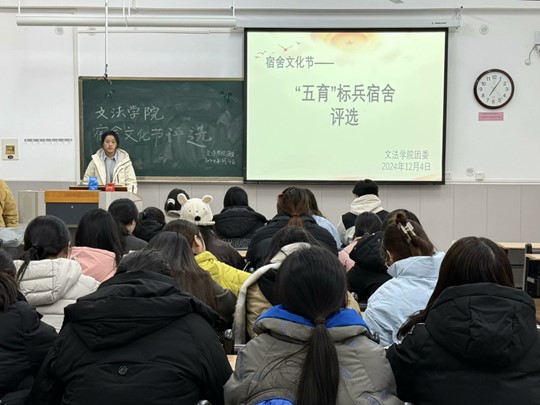 为了促进学生全面发展,将德育、智育、体育、美育、劳育融入宿舍生活,我院于12月4日晚在学院楼B214热烈开展宿舍文化节“五育”宿舍评选活动。