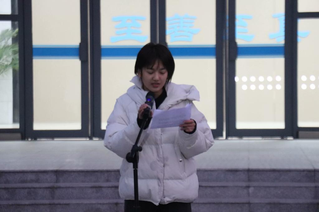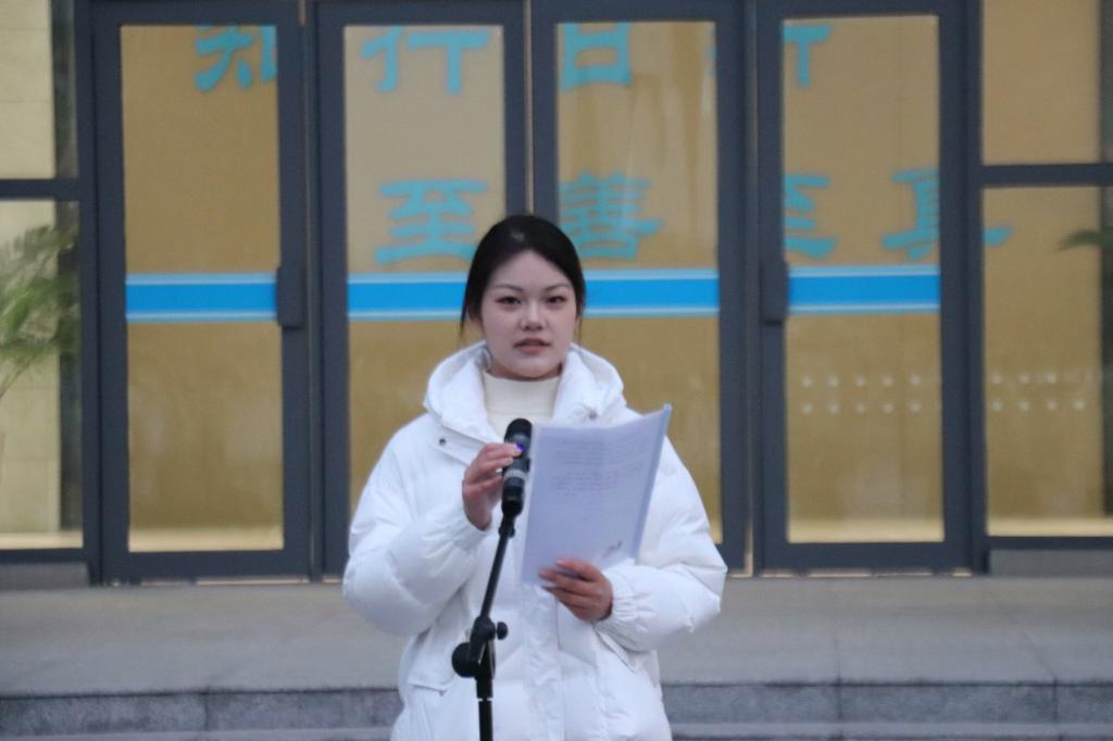 升旗礼毕,我院中文 245 班兰李宁同学作为学生代表发言。她倡导大家秉持军训精神勇闯未来征程,不惧艰难险阻,在大学四年书写属于自己的华彩篇章,开启人生新征程。