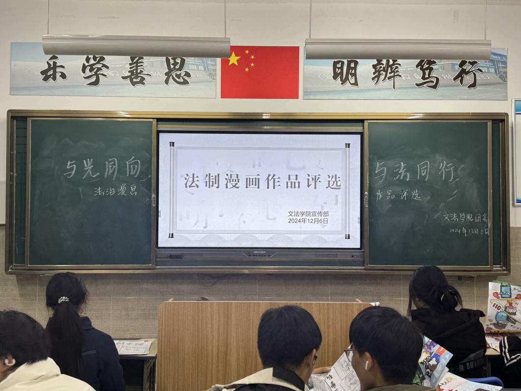 为提升学生们的法律意识,激发其艺术创造力与表达能力,在校园内营造良好的法治文化氛围,我院于11月6日在北校区树人楼210举办“与光同向,与法同行”法治漫画评比活动。
