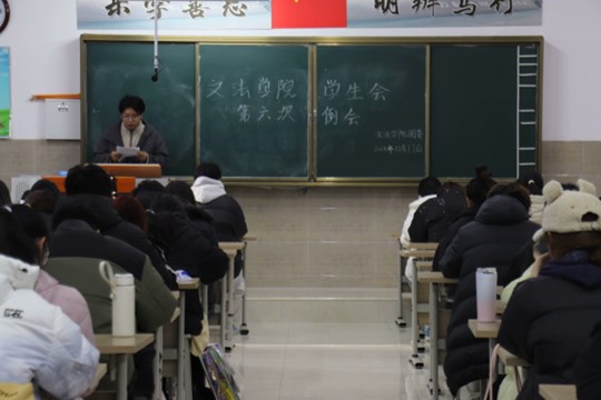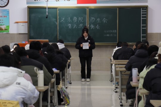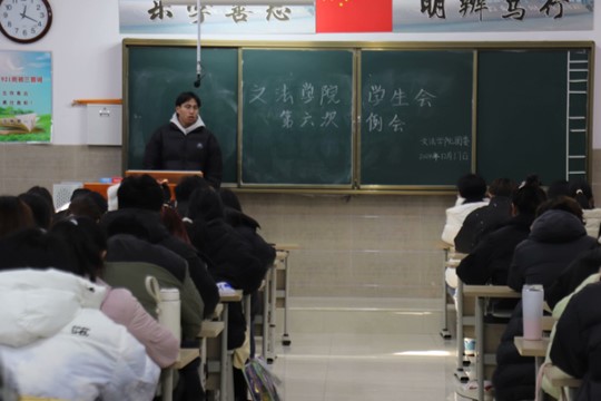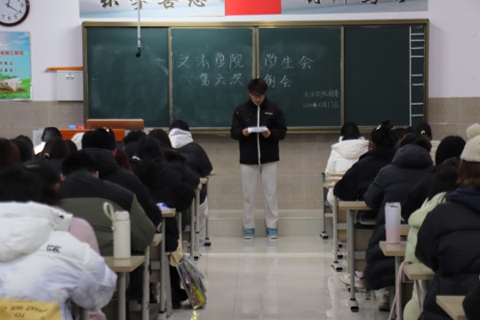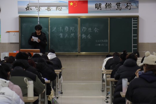 我院学生会于12月17日中午12:20-13:30在北校区启智楼229教室召开第六次会议,本次例会由我院学生会主席彭金龙主持,学生会主席团、各部部长及各部干事参加此次会议。