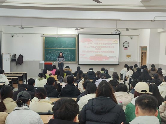 为全面提升学员的政治理论素养、综合素质和服务能力,培养造就一批具有坚定马克思主义信仰、深厚理论素养和丰富实践经验的学生骨干,我院于12月17日在南校区教学楼3-409举办学习党的二十届三中全会精神之青马学员培训会。本次会议由我院团委书记李婉鑫主持,青马班全体学员参与。