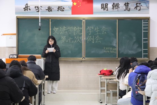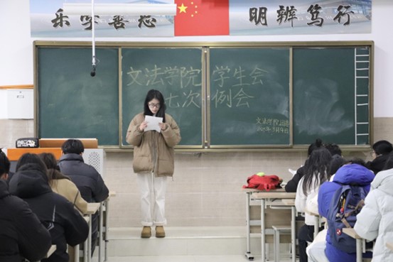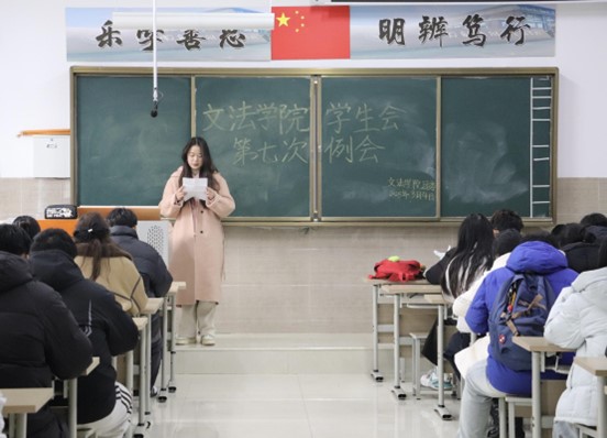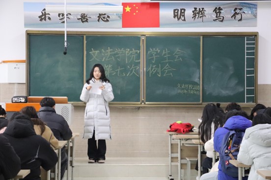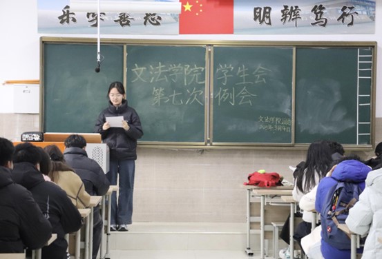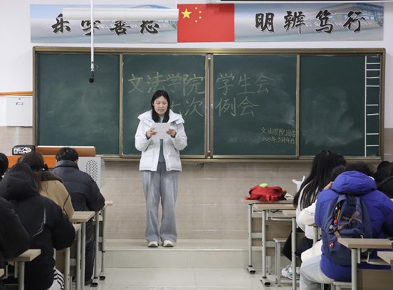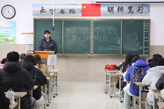 我院学生会于2025年3月4日中午12:20-13:30在北校区启智楼229教室召开第七次例会。本次例会由我院学生会主席彭金龙主持,学生会主席团、各部部长及各部干事参加此次会议。