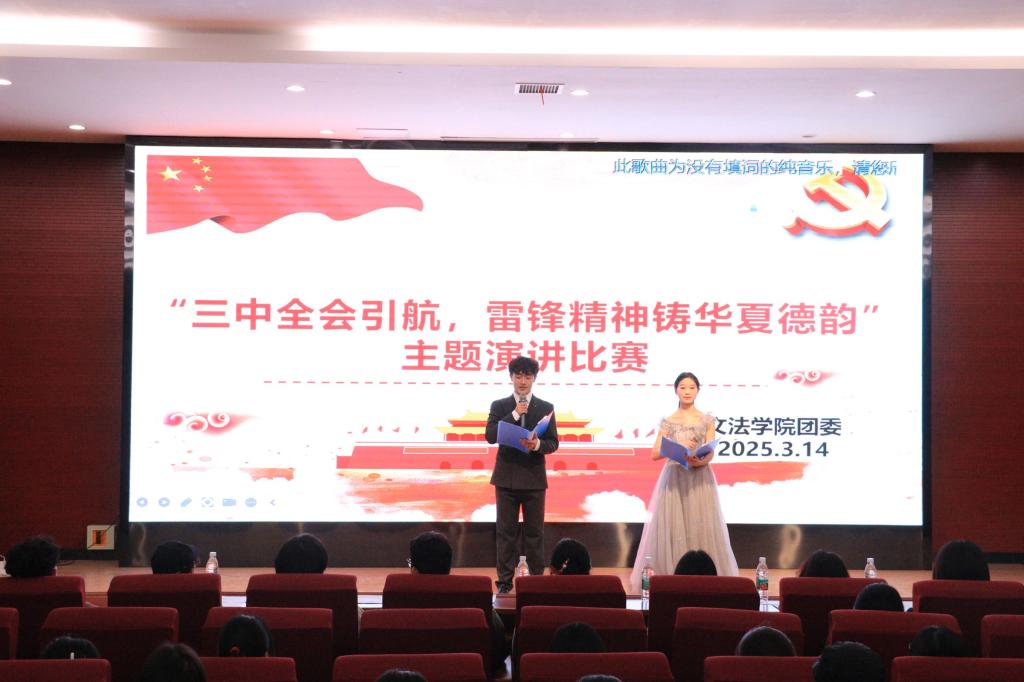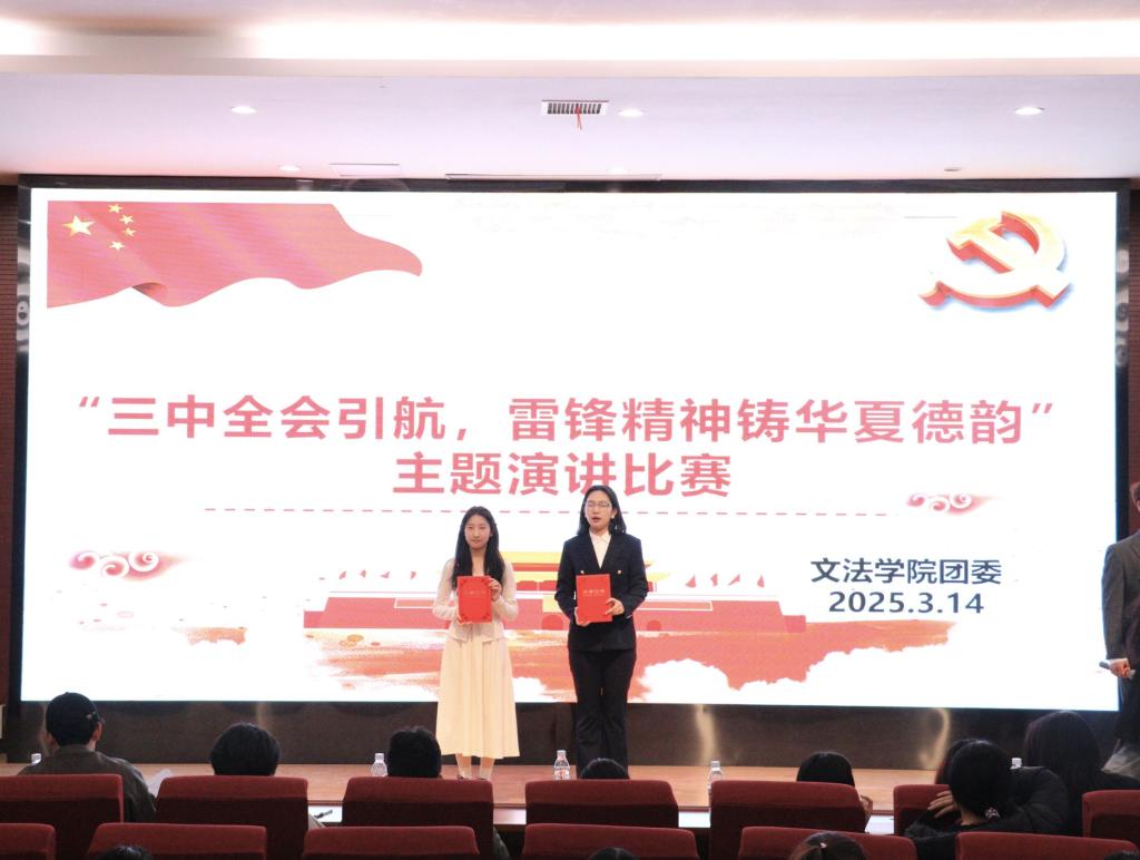 为宣传贯彻党的二十届三中全会精神,践行和弘扬雷锋精神,倡导时代新风,激发广大学生的服务意识与社会责任感,我院于3月14日19点在学院楼报告厅举办了“三中全会引航,雷锋精神铸华夏德韵”演讲活动决赛。