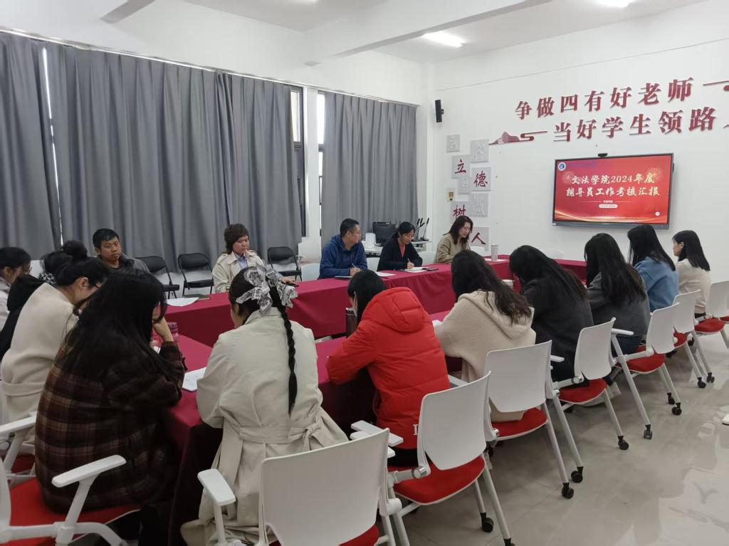 为优化学生工作流程及提升辅导员的工作能力,我院于3月20日下午在学院楼B-314开展2024年度辅导员工作考核汇报。出席人员有学生处副处长王永刚、文法学院党委副书记刘松梅以及文法学院全体辅导员。