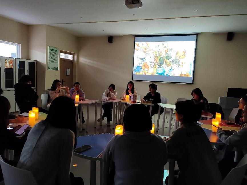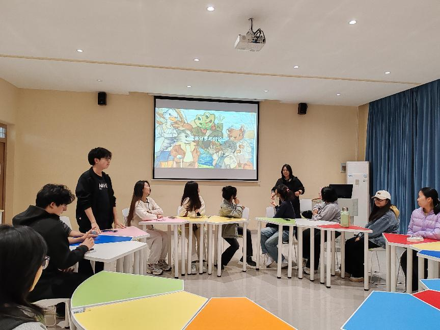 同学们围坐在圆桌旁,抽取角色剧本,大家化身“蛤蟆先生”“苍鹭咨询师”“鼹鼠”等角色,不仅要凭借推理和情感对话解开剧情谜题,还需深入角色内心,剖析角色面临的心理困境,进而探索自我情绪与成长议题。