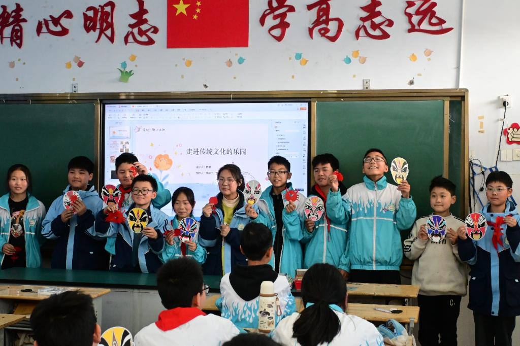 在脸谱文化课堂上,志愿者详细讲解了脸谱的起源、分类及不同色彩所代表的人物性格。随后,孩子们拿起画笔,精心勾勒、上色,欢声笑语中,白脸的曹操、红脸的关羽、黑脸的包公……一张张各具特色的脸谱在他们笔下呈现,色彩斑斓,活灵活现。活动尾声,一名志愿者激动地表示:“看到孩子们对非遗技艺充满好奇,我深刻体会到了文化传承的必要性与使命感。”