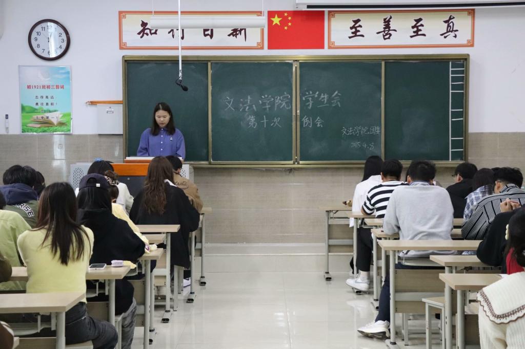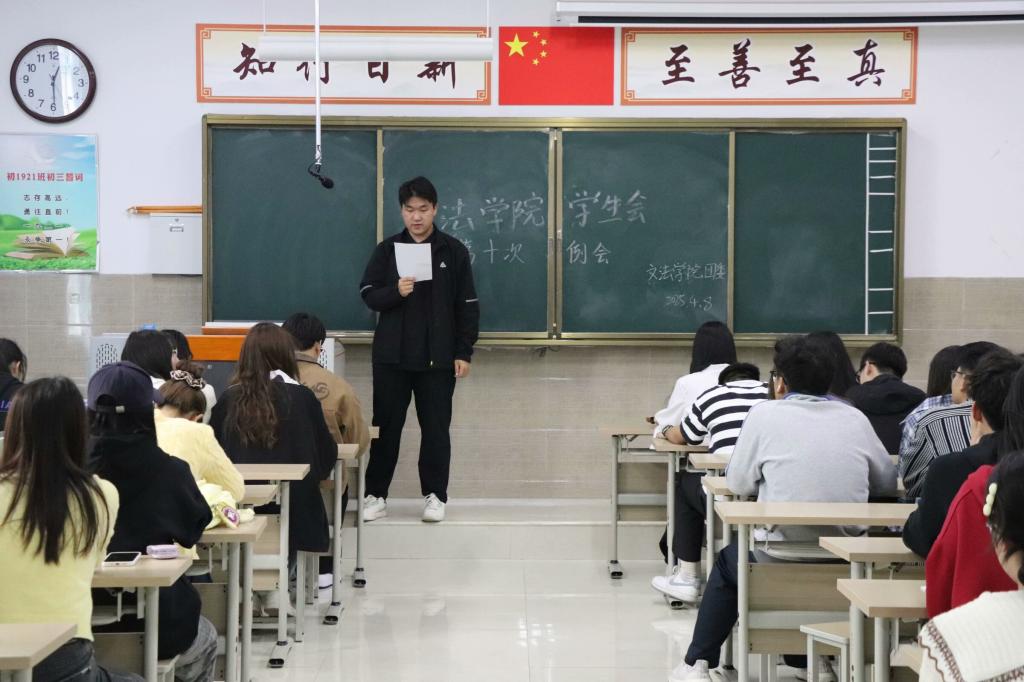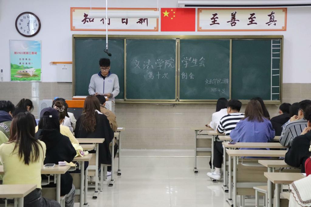 我院学生会于4月8日中午在北校区启智楼229教室召开2024-2025学年第十次例会。本次例会由我院学生会主席彭金龙主持,学生会主席团、各部部长及各部干事参加此次会议。