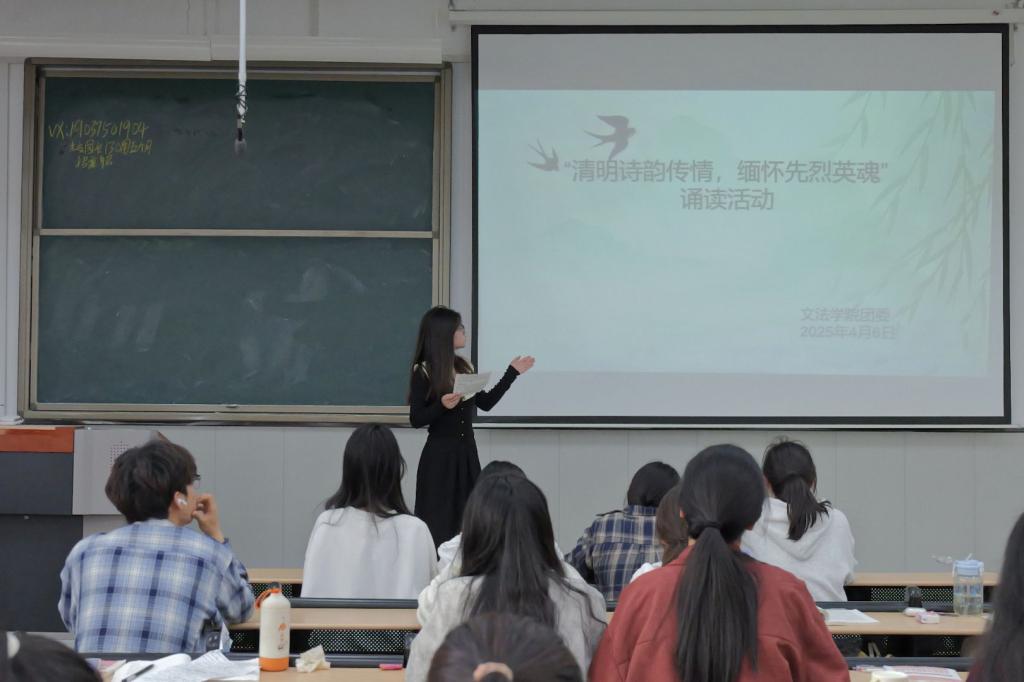 为传承中华优秀传统文化,增强同学们的文化自信与民族自豪感,引导同学们铭记历史,深切缅怀为国家和人民英勇献身的先烈,激发同学们的爱国主义情感,我院于4月6日在学院楼B-207成功举办“清明诗韵传情,缅怀先烈英魂”诵读活动,我院学生积极参与。