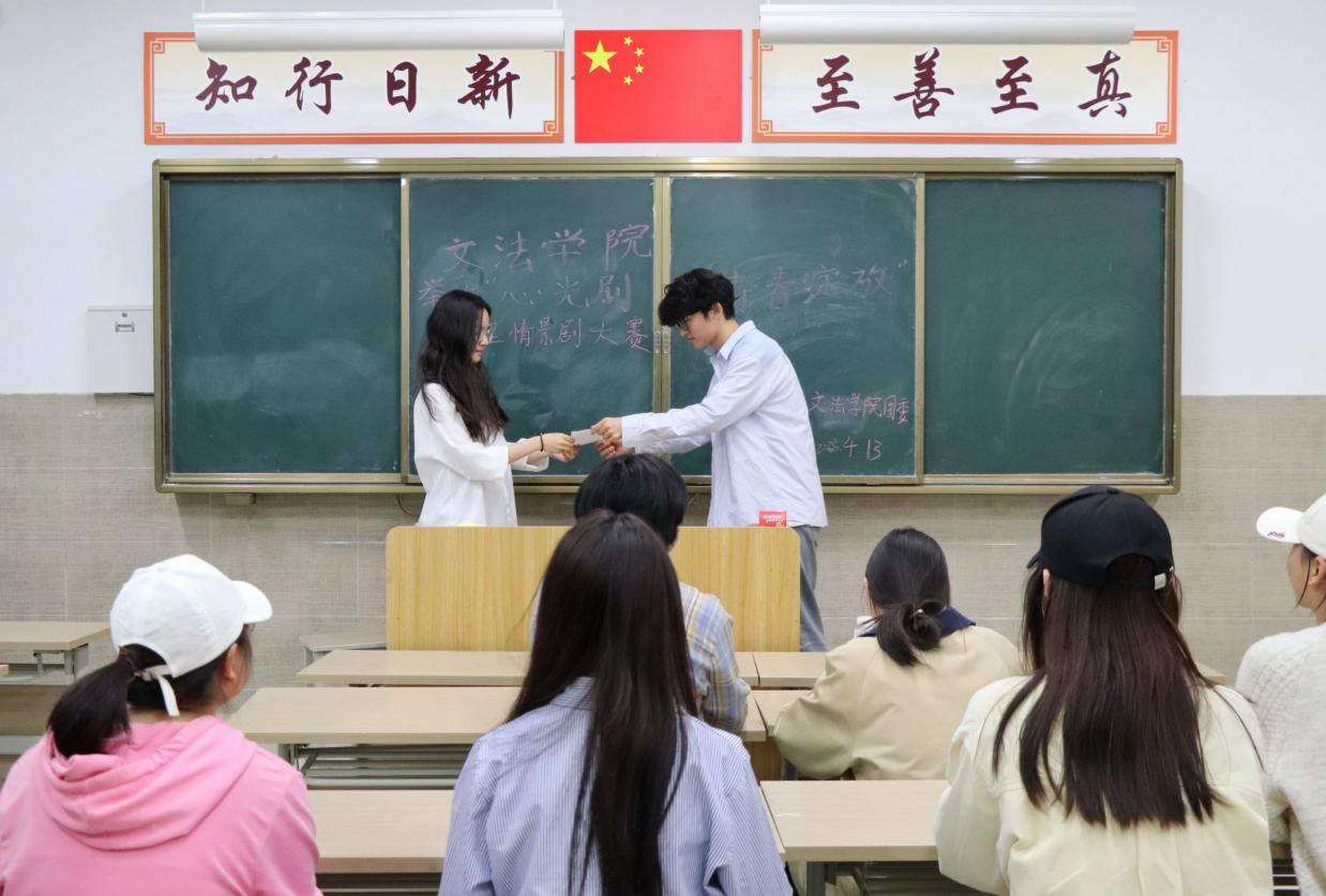 为深入推进大学生心理健康教育工作,提升大学生的心理调节能力,文法学院于4月13日晚在树人楼207举办了“心光剧场•青春绽放”第四届心理情景剧比赛。