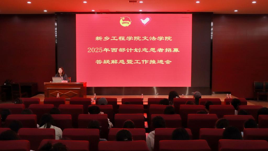 为深入贯彻习近平新时代中国特色社会主义思想,积极落实国家关于大学生志愿服务西部计划的工作部署,引导青年学子投身基层、服务社会,我院于4月22日在学院楼报告厅召开2025年西部计划志愿者招募答疑解惑暨工作推进会。本次会议由我院团委书记李婉鑫主持,报名西部计划和乡村振兴的毕业生参会。