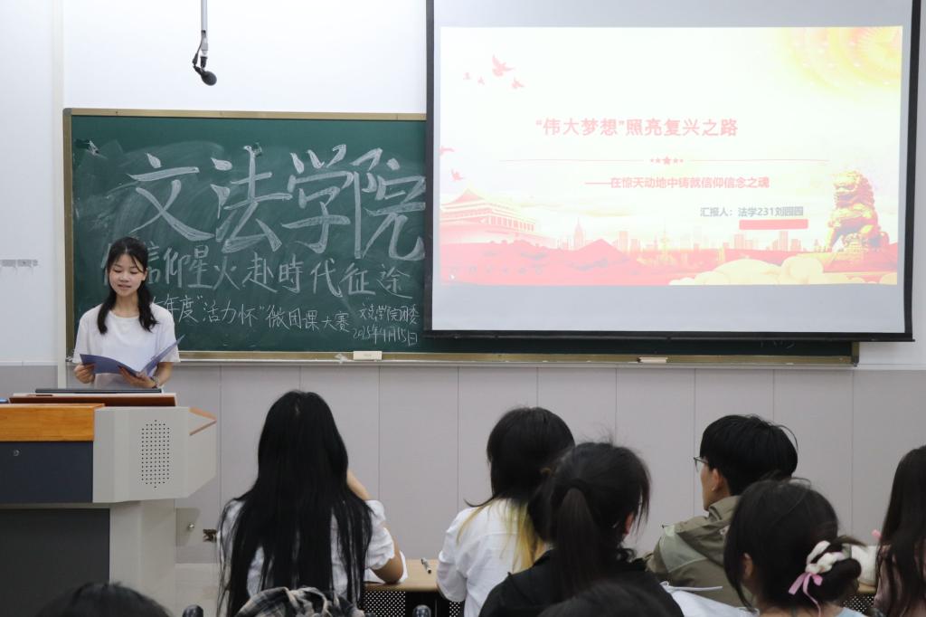 为全面贯彻习近平新时代中国特色社会主义思想,学习党的二十大精神,进一步激发学校共青团基层团组织和团干部的创新活力,为广大团干部搭建展示自我、交流思想的平台,推动高校素质教育的全面发展。我院于4月14日及4月15日分别在树人楼104和学院楼B-108举办2025年度“活力杯”微团课大赛活动。本次活动由李婉鑫老师主持,我院各团支部积极参赛。