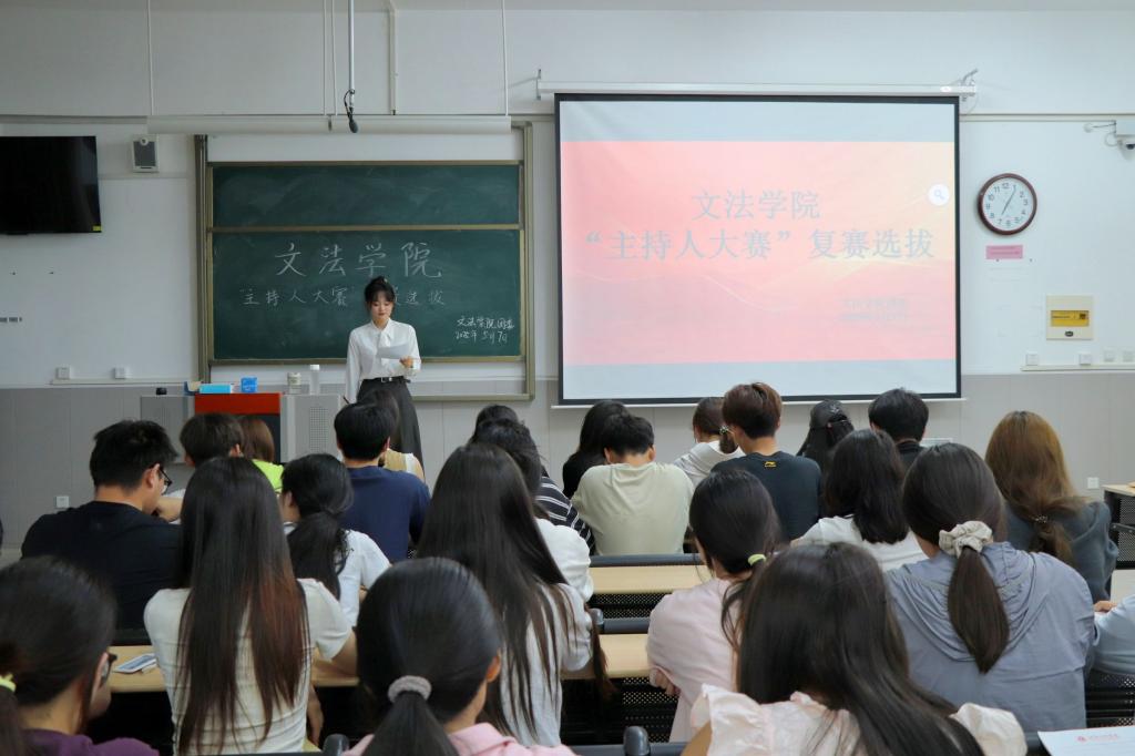 为提升学生语言表达与舞台表现能力,展现文法学子青春风采,丰富校园文化生活,我院于5月7日晚在学院楼B-302举办“主持人大赛”复赛。