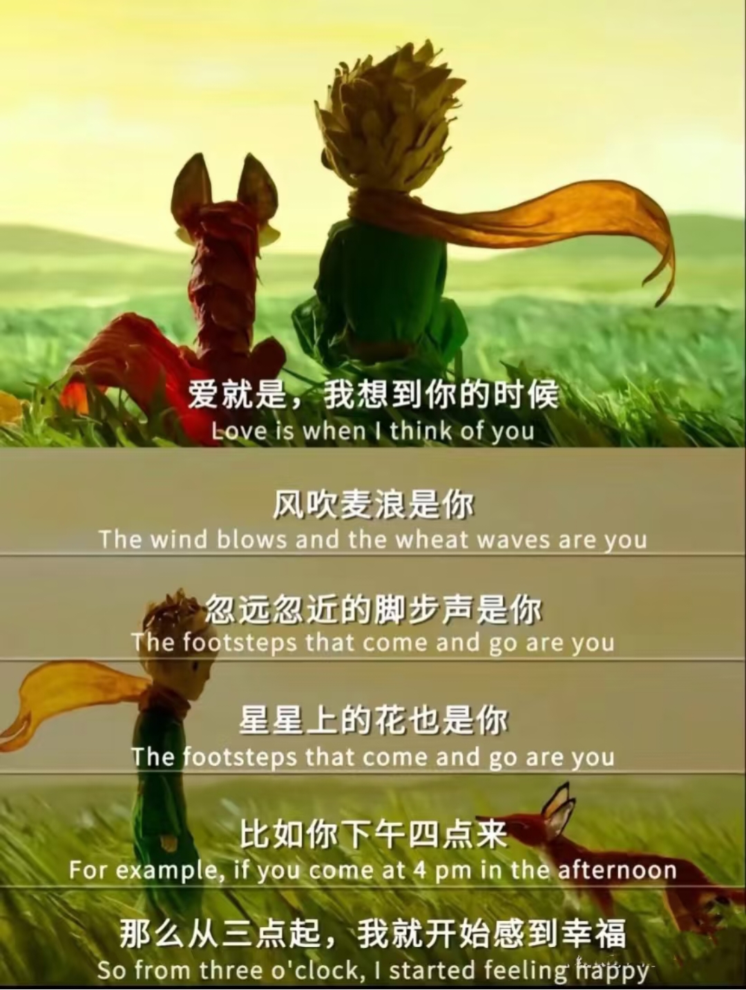 “爱不仅仅是彼此相互凝视,而是两人看往同一个方向。”《小王子》的星辰箴言中,藏着跨越星际的治愈密码。从B612星球到撒哈拉沙漠,透过小王子的纯净眼眸,重读关于驯养、责任与初心的生命诗篇。在光影交织间,让经典叩击心扉,共寻属于你的那朵心灵玫瑰。“光影疗愈”第一期观影活动诚挚地邀请同学们一同踏入这场充满奇幻与温情的观影之旅,探索心灵深处的秘密。