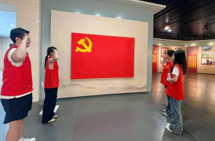 为传承先进文化基因,厚植家国情怀,6月30日,我院石子依、李嘉欣教师带领“寻太行红色薪火,奏青春奋斗号角”实践团前往辉县人民干得好展览馆。这场与历史对话的旅程,不仅让青年学子在红色文化中汲取成长力量,更以润物无声的方式,为校园精神文明建设埋下深根。