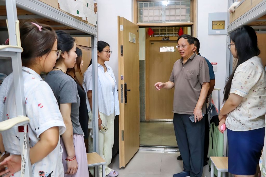 走进新生宿舍,老师们便与同学们亲切交谈,从生活环境适应、饮食起居习惯,到入学后的思想状态、对专业的认知与未来规划,话题细致而贴近新生需求。每到一间宿舍,老师们都耐心倾听新生的困惑,细致询问是否存在生活上的不便,针对新生提出的宿舍设施使用、校园服务指引等问题,现场逐一解答;对暂时无法即时解决的诉求,认真记录并明确后续跟进方案,切实为新生排忧解难。