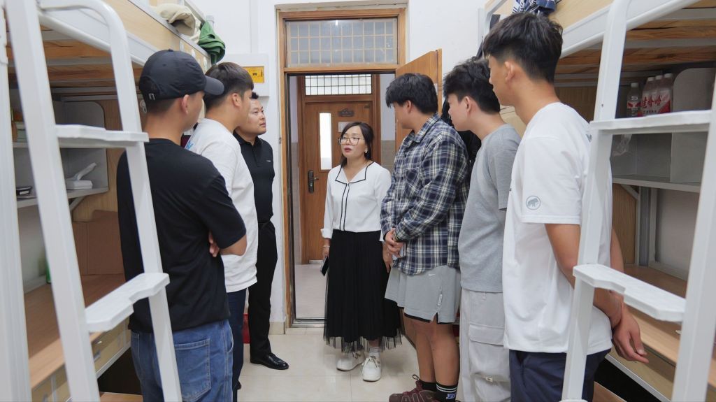 在与新生交流的同时,走访小组还对宿舍的安全保障、卫生环境等情况进行了细致检查:查看宿舍电路是否存在安全隐患、消防设施是否完备、卫生清扫是否到位,每一个细节都不放过。张振华老师着重强调,宿舍是学生在校期间学习生活的重要场所,宿舍安全更是校园安全的 “重中之重”。他反复叮嘱同学们,要时刻绷紧安全之弦,严格遵守学校宿舍安全管理规定,坚决杜绝违规电器使用,切实增强用电安全、消防安全意识,共同维护安全、整洁、和谐的住宿环境,为自身学习生活筑牢 “安全屏障”。
