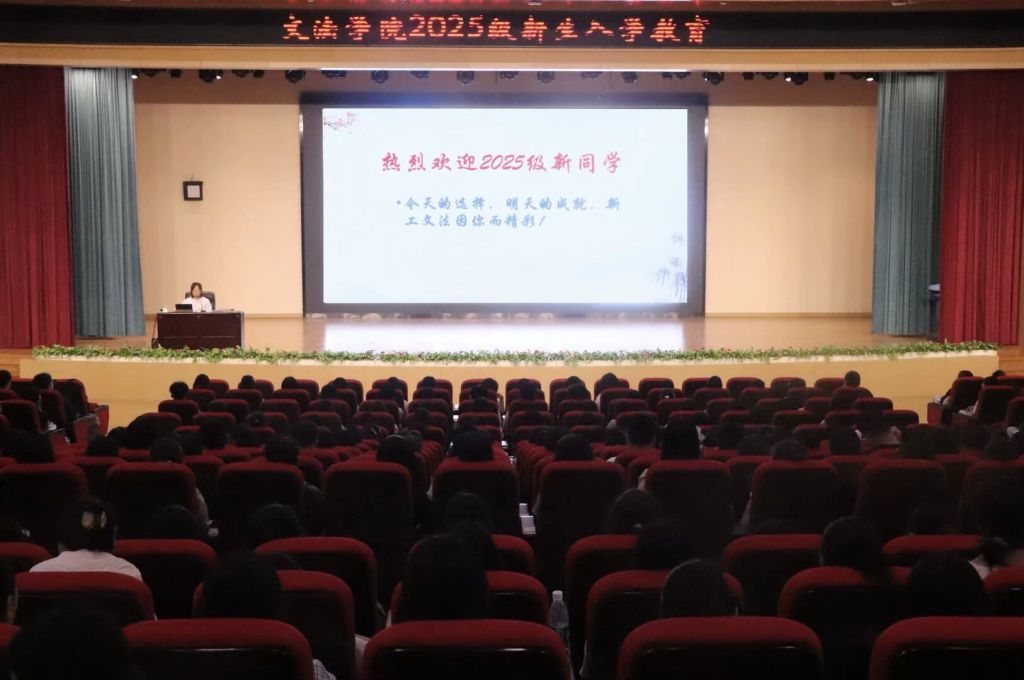 为帮助2025级新生尽快适应大学生活、明确学业发展目标,我院于2025年9月9日在文渊楼报告厅召开了新生入学教育。本次会议由文法学院常务副院长罗艳娟主讲,团委书记李婉鑫主持会议,文法学院北校区新生辅导员和25级本、专科新生参与。