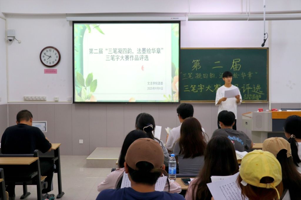 为响应教育部加强高校美育工作的号召,丰富校园文化生活,提高学生人文素养,让承载千年历史底蕴与民族精神的书法艺术在校园重焕生机,我院于9月9日晚在学院楼B–207教室举办第二届“三笔凝四韵,法墨绘华章”三笔字大赛,我院学生积极参与。
