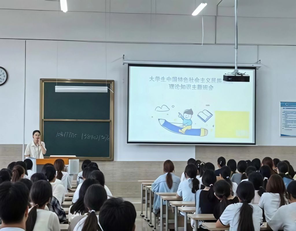 为深入学习贯彻习近平总书记关于民族宗教工作的重要论述,切实加强大学生思想政治教育,引导新生树立科学的宗教观、民族观。9月9日中午文法学院在文渊楼108阶梯教室和树人楼514教室同步开展大学生民族宗教主题班会。帮助新生系好 “思想安全带”,为构建和谐稳定校园环境奠定坚实基础。本次班会由辅导员主持,我院全体新生积极参与。