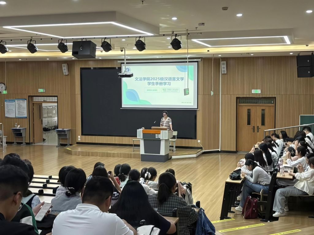 为助力文法学院新生尽快完成高中到大学的角色转变,顺畅地开启大学生活,让新生清晰知晓校园各项规范与要求。我院于9月12日中午在北校区文渊楼108阶梯教室及树人楼514开展2025级学生手册学习活动,此次活动由各专业辅导员主持,25级新生全体参与。