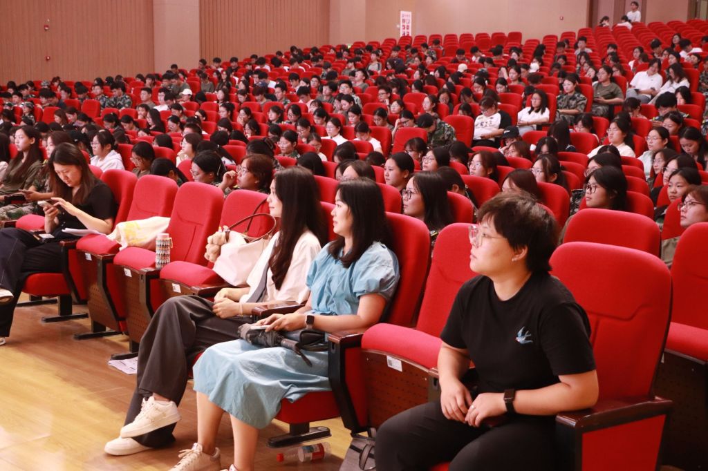 宣讲中,张琦以百年党史中青年先锋的典型案例为切入点,梳理不同历史时期青年在理想信念指引下,投身民族独立、国家建设、改革发展的奋斗轨迹,深刻阐释理想信念作为共产党人的精神支柱、青年成长成才根本遵循的核心要义,引导新生从历史传承中感悟信仰力量。她强调要把个人理想追求与党和国家事业发展紧密结合,既要锚定法学、中文等专业领域深耕细研,在学科学习中夯实理论根基;也要主动走出校园参与社会实践,在基层服务、社会调研中践行知行合一,以过硬本领与坚定信念涵养家国情怀。