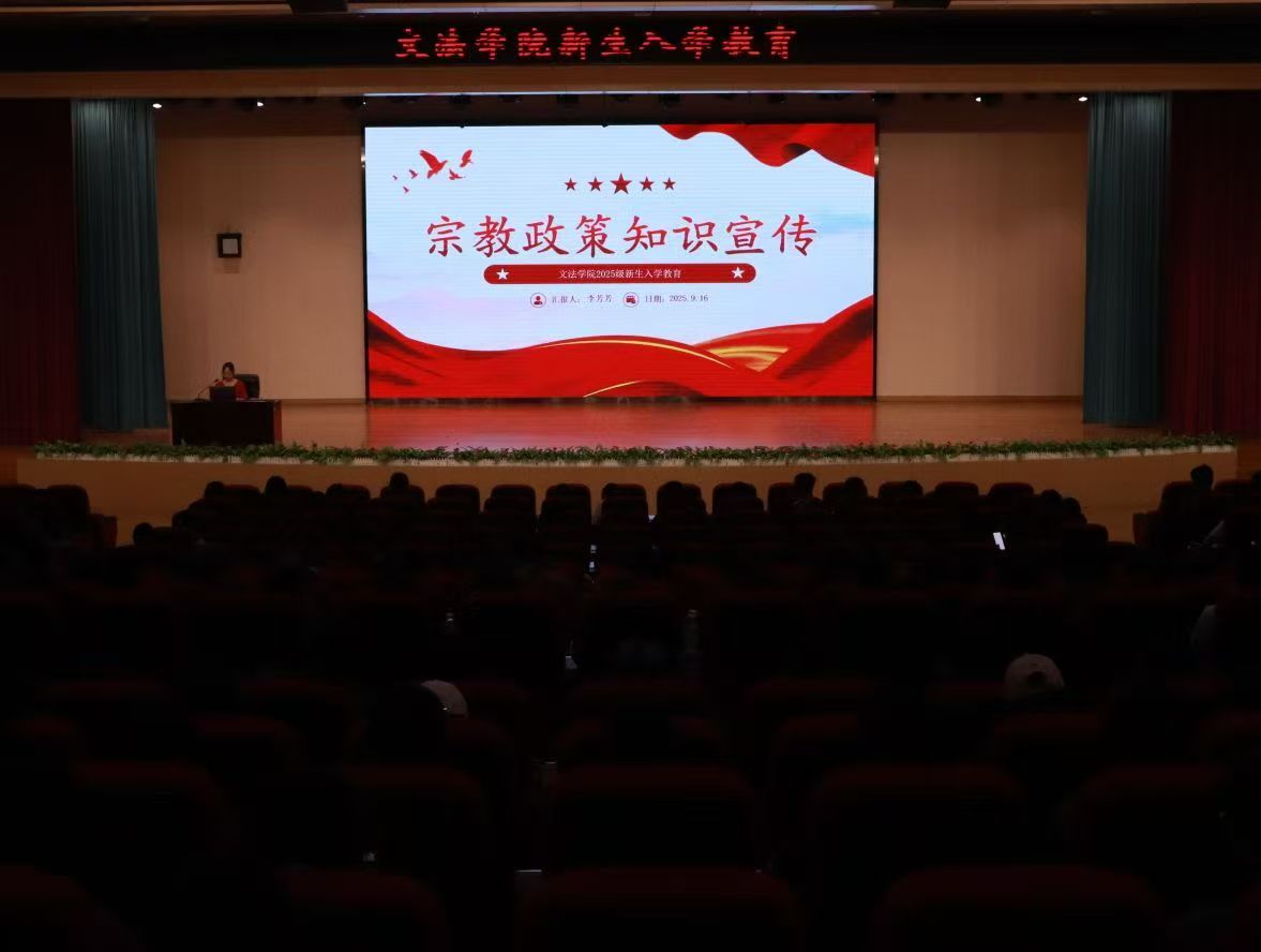 为切实加强新生对宗教政策的认知,引导其树立科学的宗教观念,筑牢抵御宗教渗透的思想防线,我院于9月16日在文渊楼报告厅召开宗教政策知识宣传会议。本次会议由李芳芳老师主持,我院全体新生参与。