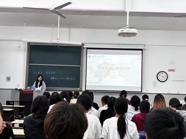 国教233班与国教234班的团支书则给大家讲起田汉、聂耳创作国歌的故事。先辈们在战火中笔耕不辍,用歌词记录抗争、用旋律凝聚勇气的经历,让同学们听得格外认真,眼神里满是崇敬,互相分享心里的感动与收获。合唱环节,大家先跟着旋律找节奏,随后共同唱响《义勇军进行曲》和《歌唱祖国》。歌声整齐动听,爱国的情愫也在一次次传唱与互动中,悄悄在每个人心里扎了根。