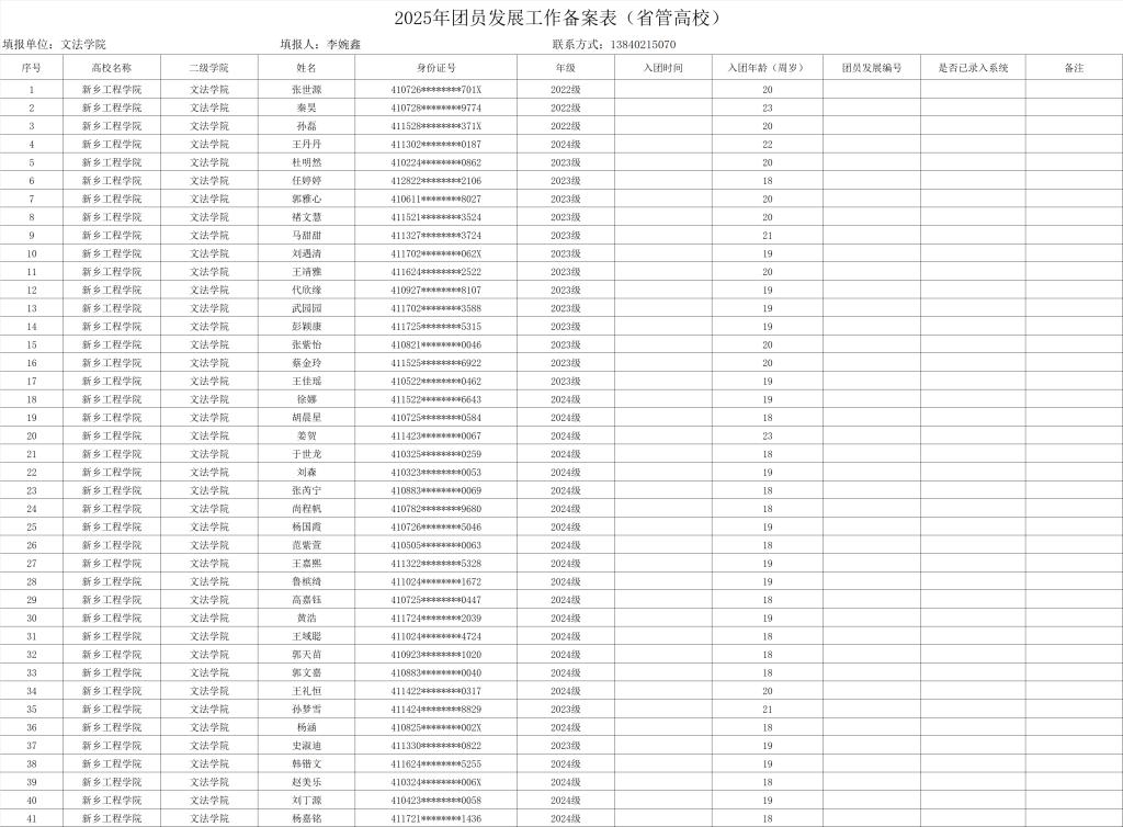 现将文法学院2025年团员发展工作备案表进行公示。