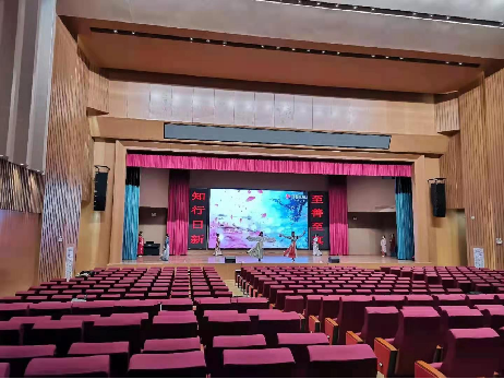 文学演练厅主要为古代文学、现当代文学、外国文学等课程的实践环节提供演练场地。主要培养学生的语言表达、戏剧编排、组织协调能力,让学生直观感受文学经典的魅力,增强文化自信,弘扬中华优秀传统文化。该演练厅还可用于文艺汇演、专家讲座等各项大型活动。